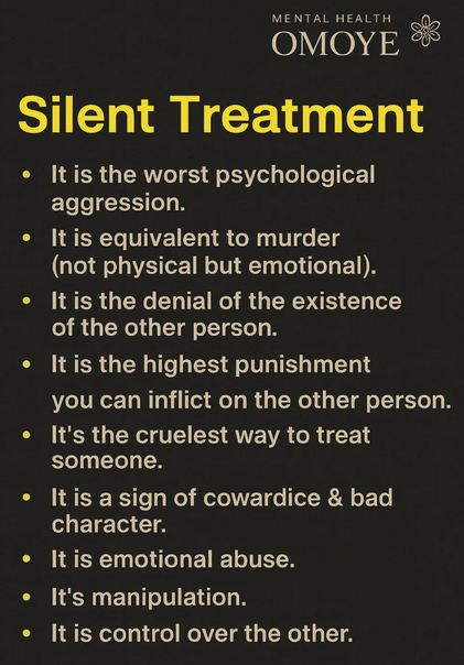 Toxic men and women create arguments, then when you react YOU get the silent treatment from them.